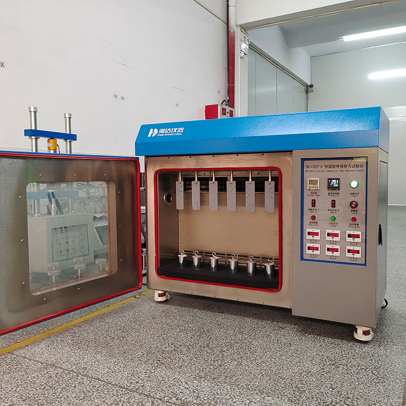 HD-C527-6恒溫膠帶保持力試驗(yàn)儀,將試樣膠帶在一定溫度和一定的荷重下,對(duì)膠帶的粘合力做靜態(tài)負(fù)荷試驗(yàn),通過膠帶貼合的保持時(shí)間,以判斷膠帶持粘性。