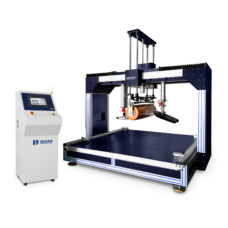 本機(jī)適用適用于強(qiáng)力彈簧床墊、普通彈簧床墊、泡沫床墊、棕纖維彈性床墊的綜合力學(xué)測(cè)試。模擬人類睡眠中不斷的翻滾而設(shè)計(jì)的機(jī)器,采用一個(gè)滾動(dòng)式加載模塊水平放置在床墊規(guī)定的加載部位,以一定頻率滾動(dòng),對(duì)床墊進(jìn)行往復(fù)加載,以檢驗(yàn)床墊對(duì)長(zhǎng)期重復(fù)性滾動(dòng)載荷的承受能力。其中還配備了包括測(cè)高、軟硬度、滾動(dòng)疲勞的測(cè)試;符合國(guó)家、EN、ASTM(選購(gòu))等多個(gè)測(cè)試標(biāo)準(zhǔn)要求。