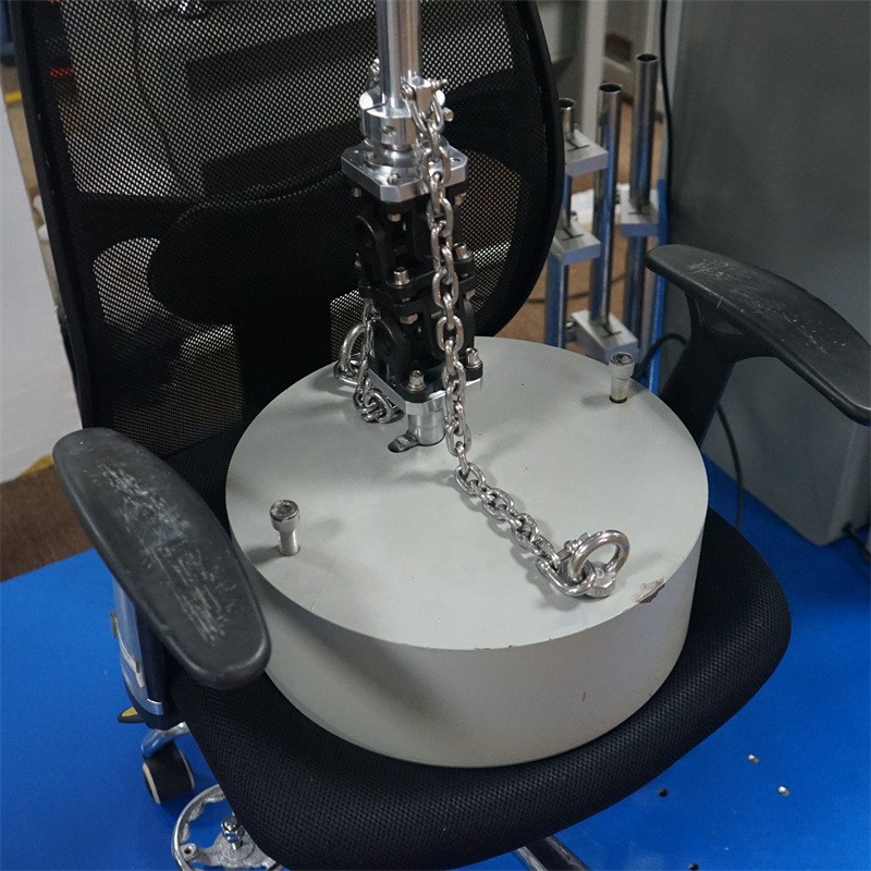 為確保測試結(jié)果的準(zhǔn)確性和真實(shí)性,椅子旋轉(zhuǎn)試驗(yàn)儀精心配置了可加載座面的測試砝碼,通過旋轉(zhuǎn)桿與萬向節(jié)的巧妙搭配,能夠適應(yīng)椅子面的不同角度,模擬真實(shí)使用狀態(tài)下的旋轉(zhuǎn)受力情況。其簡易裝夾結(jié)構(gòu)自帶自動(dòng)調(diào)心功能,使得椅腳在測試過程中無垂直受力,有效避免了因受力不均導(dǎo)致的測試誤差。此外,儀器的測試橫梁高度可調(diào),能夠輕松適配不同椅子的高度需求,進(jìn)一步增強(qiáng)了其在各類旋轉(zhuǎn)椅測試中的普適性。而觸摸屏與PLC的結(jié)合,賦予了儀器高度的人機(jī)交互體驗(yàn)與智能化控制能力,具備停斷電記憶力功能,即使在試驗(yàn)過程中遭遇突發(fā)狀況,也能確保數(shù)據(jù)的完整保存與恢復(fù)。